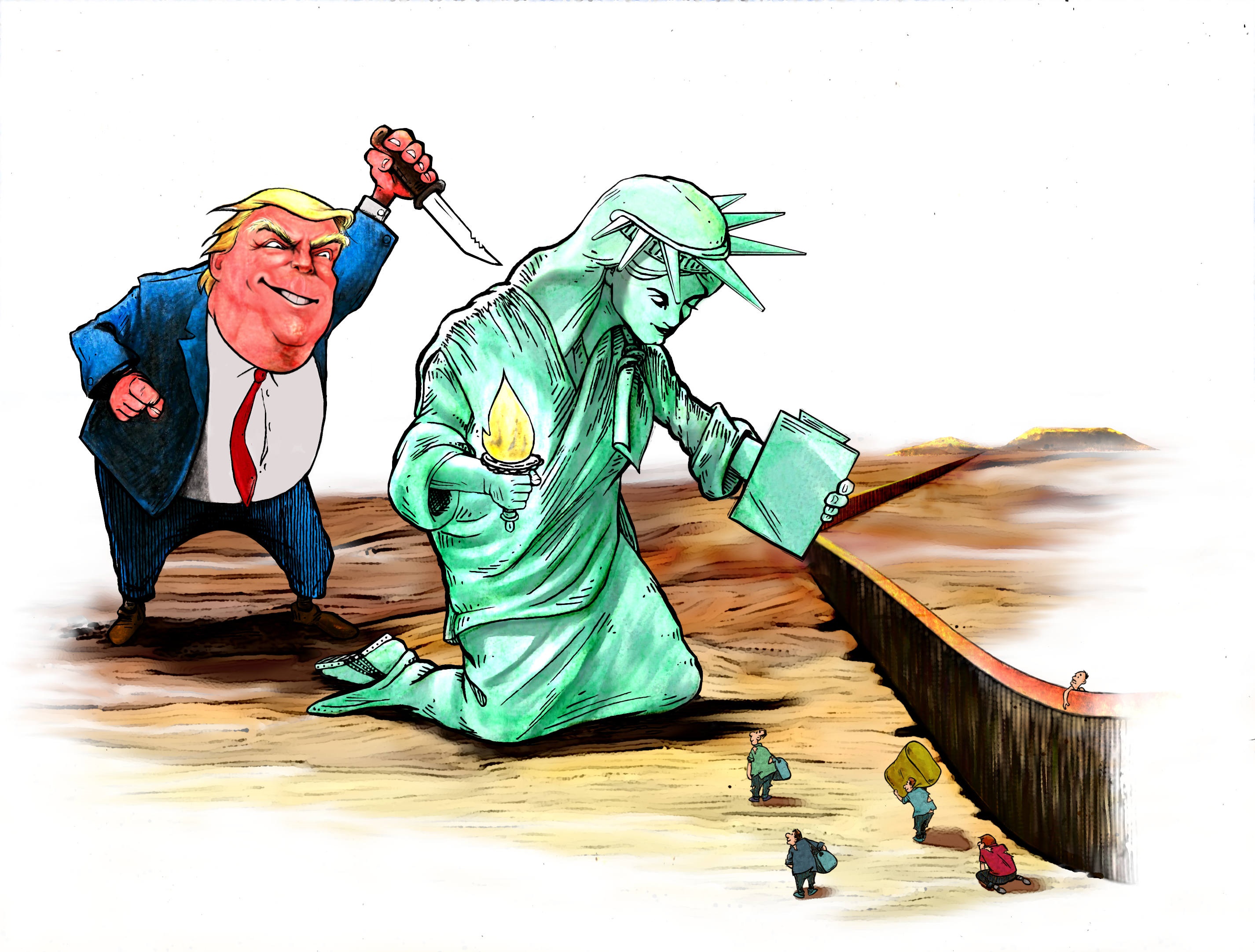 JAVIER GUTIERREZ, Wish You Were Here!, Editorial Cartoon sponsored by The Herb Block Foundation. Grade 12, Age 18, Reavis High School, Burbank, IL. 2018 Scholastic Art & Writing Awards, Gold Medal.
