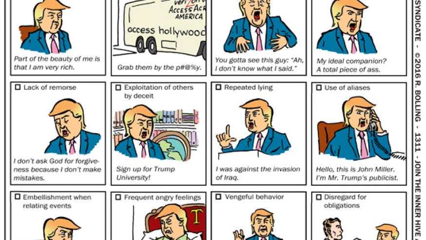 “Tom the Dancing Bug” is a free-format comic strip that uses varying types of humor, artistic styles and formats. It’s an unusual strip in that in any given week, it could feature a spoof, a multi-panel sketch, political or absurdist humor, recurring characters or caricatures of real people. But during 2016, political subject matter was at its heart, as it mostly dealt with the election and the rise to power of Donald Trump.