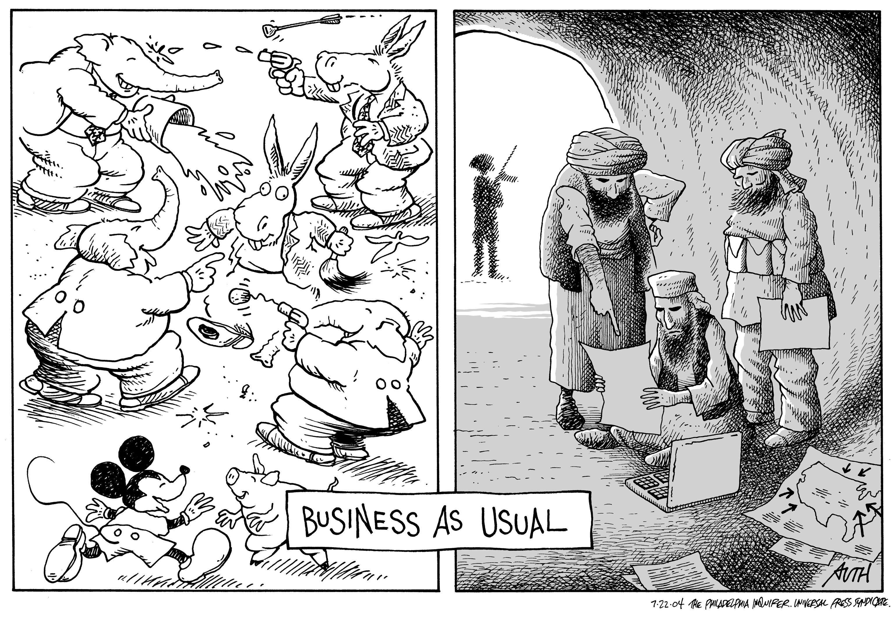 To Chris Satullo, editorial page editor of the Inquirer, and my colleagues on the editorial board, I owe a deep debt of gratitude. Chris loves our mission, civic dialog, and the struggle to make sense of the world. He knows the value of bold, irreverent graphic commentary and is the target of much abuse because of me. He is a collateral damagee.